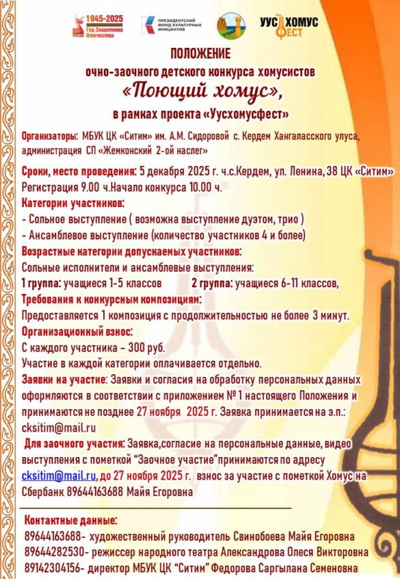 Мы рады видеть вас на официальном сайте МБУК ЦК «Ситим» имени Акулины Михайловны Сидоровой. Здесь вы найдете всю актуальную информацию о деятельности нашего учреждения культуры.