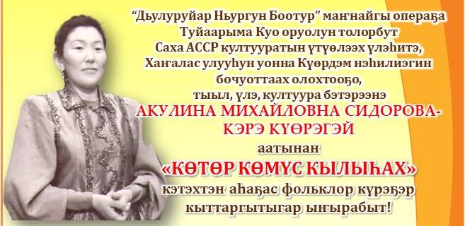 21 Май 2025«Көтөр көмүс кылыһах — 2025» Дьулуруйар Ньургун Боотур маҥнайгы операҕа Туйаарыма Куо оруолун толорбут Саха…1 Далее 1 нет Конкурсы, Новости