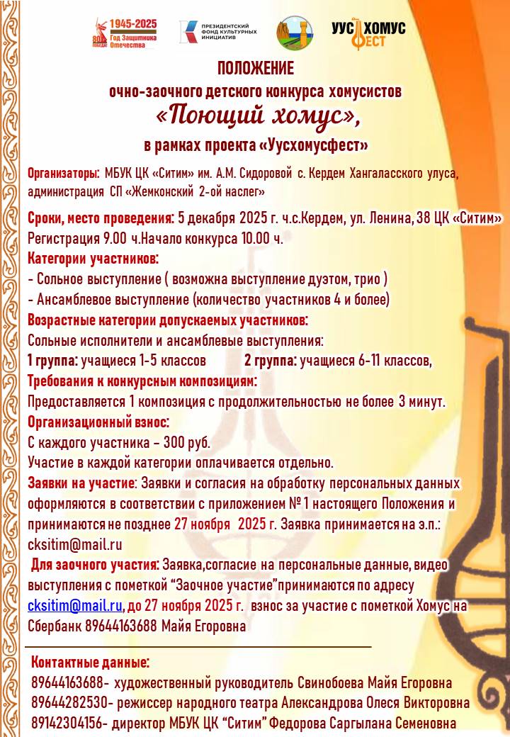 Положение очно-заочного детского конкурса хомусистов «Поющий хомус»