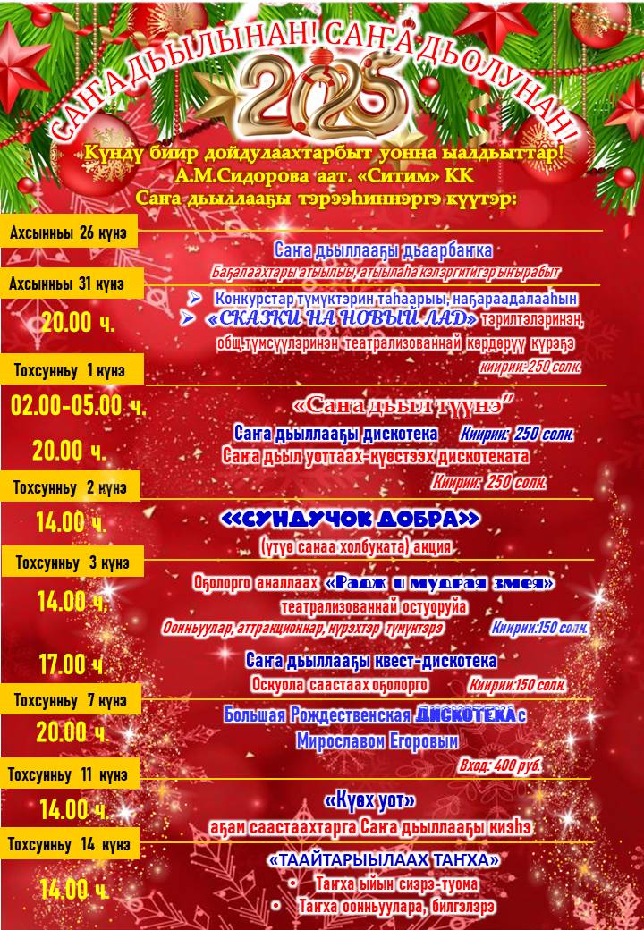 Саҥа дьыллааҕы тэрээһиннэргэ күүтэбит